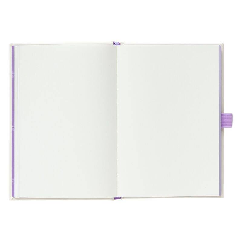 It has 96 sheets of A5 size. Hardback cover with glued binding. Matching pen. Inside pocket at the back.
